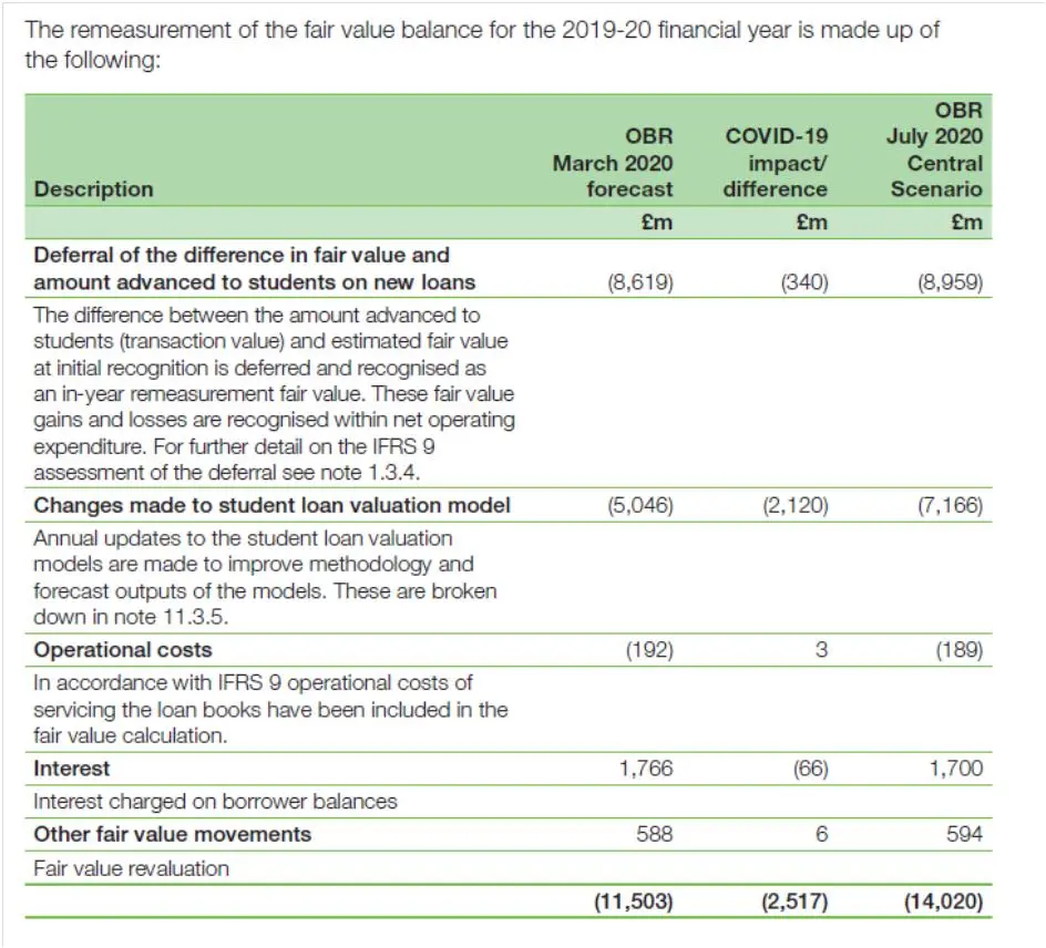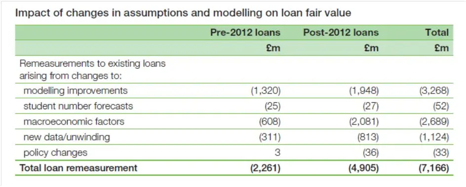 As can be seen from the table below, “Fair Value movement” for student loans amounted to a non-cash cost of over £14billion.
