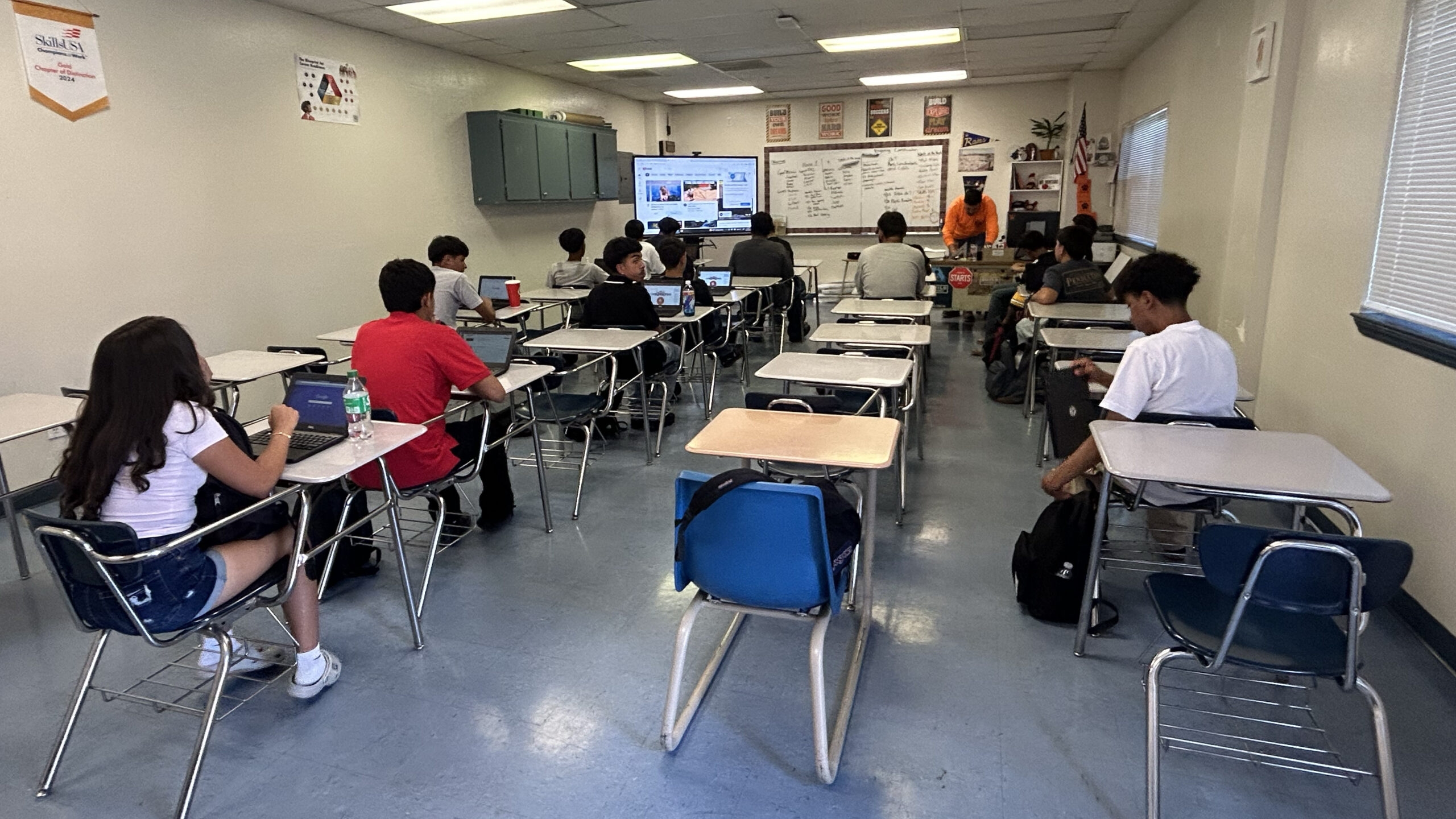 “Anytime we cannot be outside, (the students) have to sit in the bleachers and do online assignments,” said Millie Alvarado, P.E. department head.