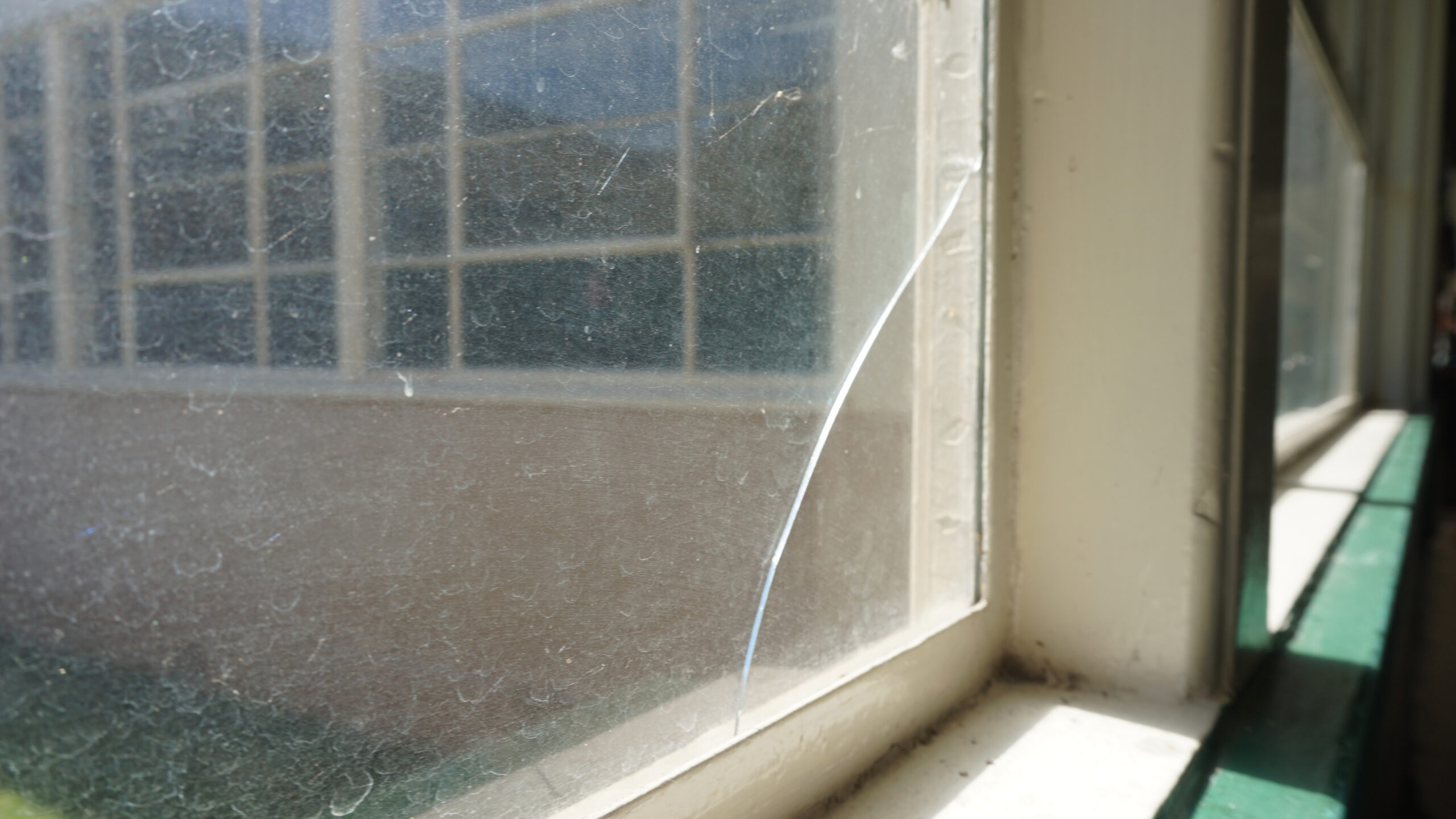 In one particularly bad spot, teachers have taken to tying a garbage can to one window with a rope, to collect the water before it floods the hallway floor.