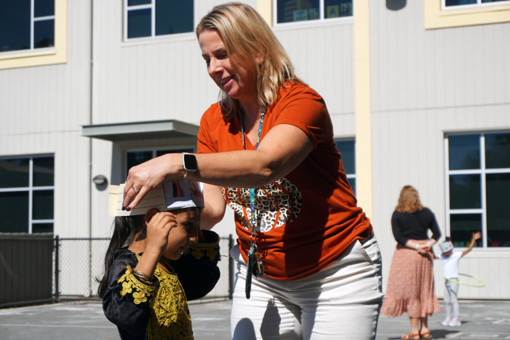 Principal Jamal Hicks says about 150 people show up outside the school each evening to visit and watch their children play on the school lawn and sidewalks. He says the school provides safe, well-lit space that isn’t readily available elsewhere in the community.