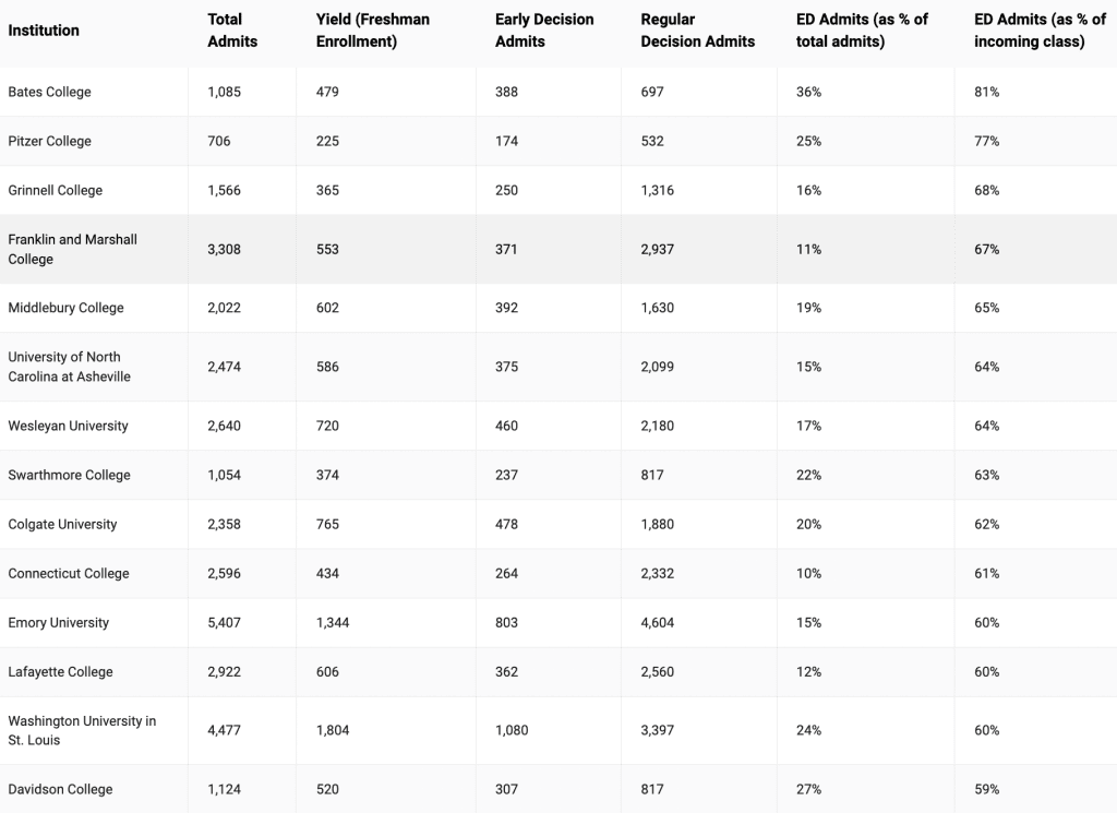 Sampling of Colleges that rely heavily on Early Decision Admits