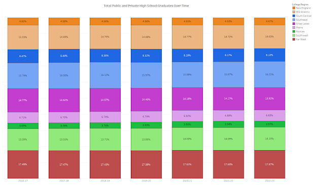 Here is the breakdown of high school graduates by these regions, showing the percentage of total in each year. Columns total to 100% in each year.