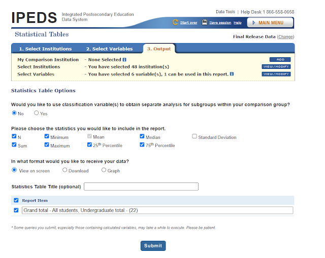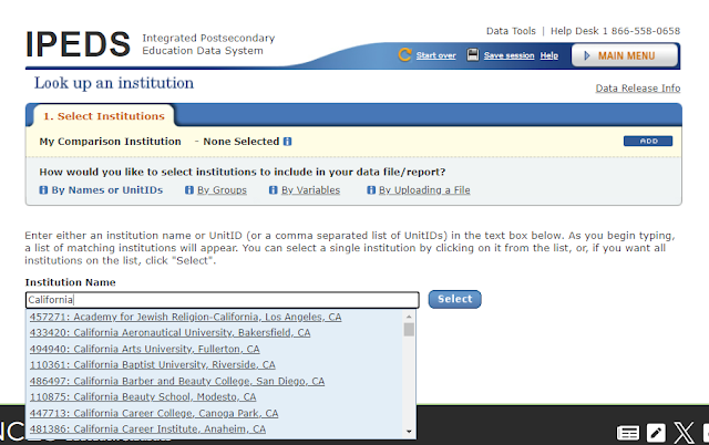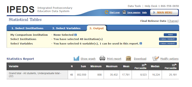 Go ahead and practice getting information out of IPEDS like this. You cannot break anything. There is a Start Over button in case you get stuck.