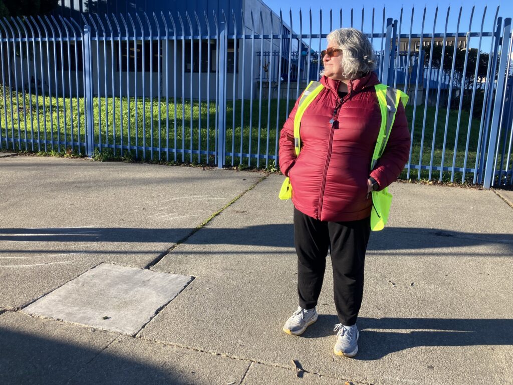 Alma Torres, a mother of both elementary and high school students in Oakland, said even though she is a U.S. citizen, she has been worried about ICE agents detaining her family members, neighbors, or other parents in her community. Seeing volunteers outside her children’s schools has helped alleviate some of her fears.