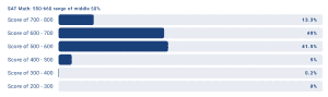 Below is an example of what you will find for an individual school. At the top of each graph, you’ll see the middle range of SAT test scores in math and “evidence-based reading and writing” (EBRW) and the 50% range for ACT scores. I didn’t include it, but there are also charts for ACT’s math and reading scores.